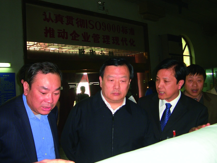 中共吉林省委書記(時任浙江省副省長)巴音朝魯在宏達經編股份有限公司測試中心考察