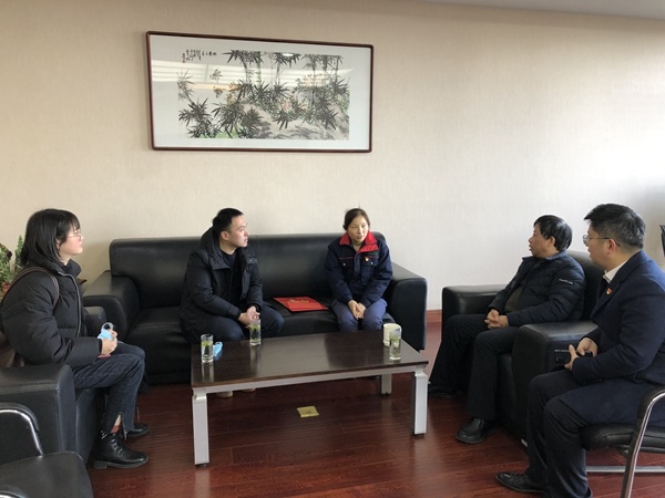 1月29日下午海寧市聯創辦副主任沈洵奔一行來到宏達高科慰問海寧市道德模范沈海燕,許村鎮黨委委員陸凜、公司領導陪同。