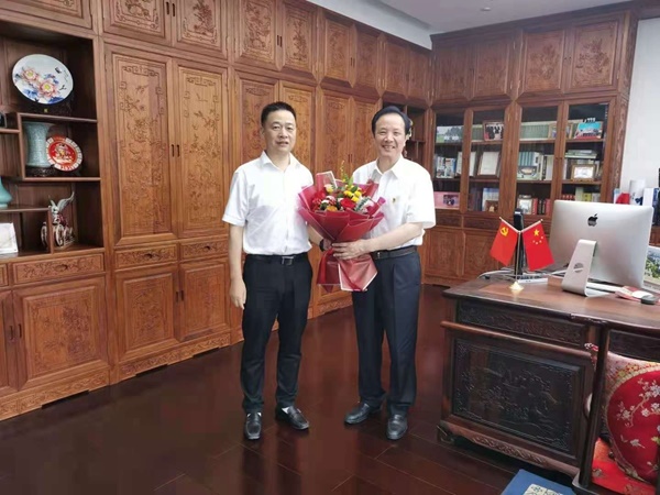 七一前夕,許村鎮黨委書記朱利江慰問嘉興市優秀共產黨員、宏達控股集團黨委書記沈國甫。