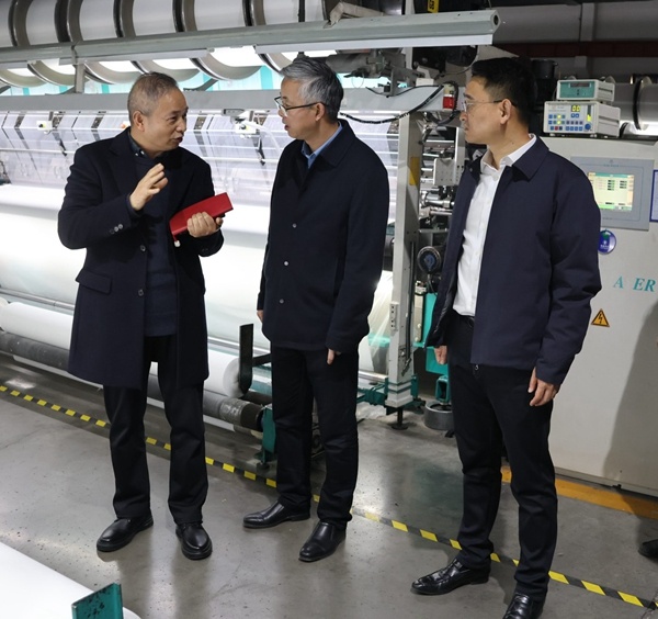 在宏達高科,徐勇一行參觀了經編車間及公司展廳,對公司的產品、發(fā)展歷程、產業(yè)布局有了深入的了解。