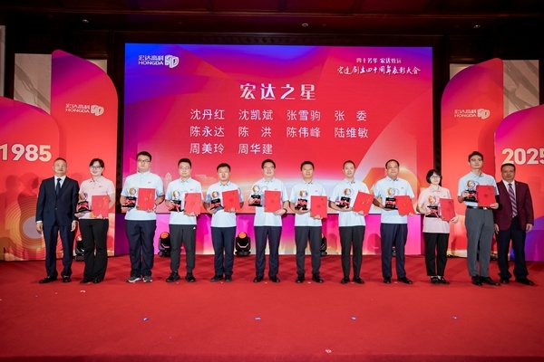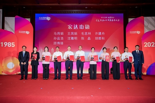 10月18日,以“四十芳華 宏達致遠”為主題的宏達創立四十周年表彰大會在杭州宏達時代廣場隆重舉行。杭州市臨平區、海寧市、許村鎮相關領導,合作伙伴代表、宏達退休員工代表與全體宏達員工齊聚一堂,共同見證這一承載榮耀與夢想的里程碑時刻,回顧企業四十年奮斗征程,共繪未來發展藍圖。