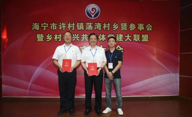 2019年816日下午,海寧市許村鎮蕩灣村鄉賢參事會暨鄉村振興共同體黨建大聯盟成立大會在該村舉行,我集團公司董事長沈國甫在大會上被聘為許村鎮蕩灣村鄉賢參事會名譽會長。