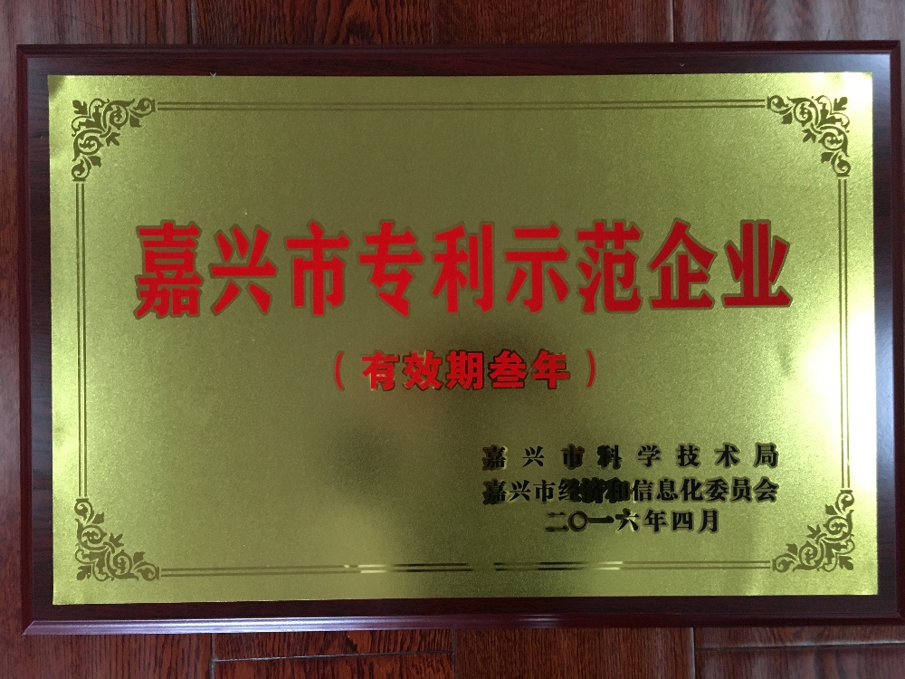 近日,公司收到了嘉興市科技局、嘉興市經(jīng)信局聯(lián)合頒發(fā)的《嘉興市專利示范企業(yè)復(fù)審證書》,有效期為三年。