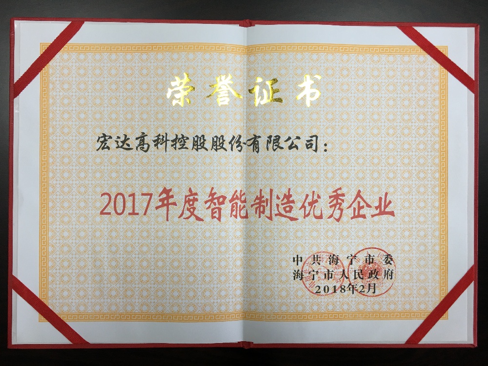 2月22日下午,海寧市“工業(yè)強(qiáng)市是奮斗出來的”暨三級干部大會(huì)在海寧市政府會(huì)議中心召開。會(huì)上,宏達(dá)高科控股股份有限公司榮獲“2017年度智能制造優(yōu)秀企業(yè)”稱號,宏達(dá)控股集團(tuán)兼“宏達(dá)高科”董事長沈國甫參加會(huì)議并受獎(jiǎng)。