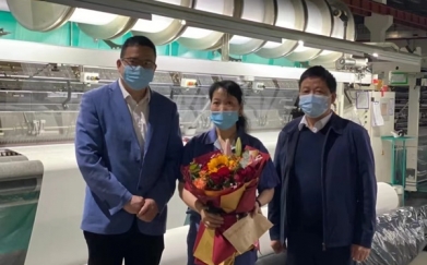 4月29日,許村鎮(zhèn)工會主席俞建強來到宏達高科慰問浙江省勞模趙巧娟。